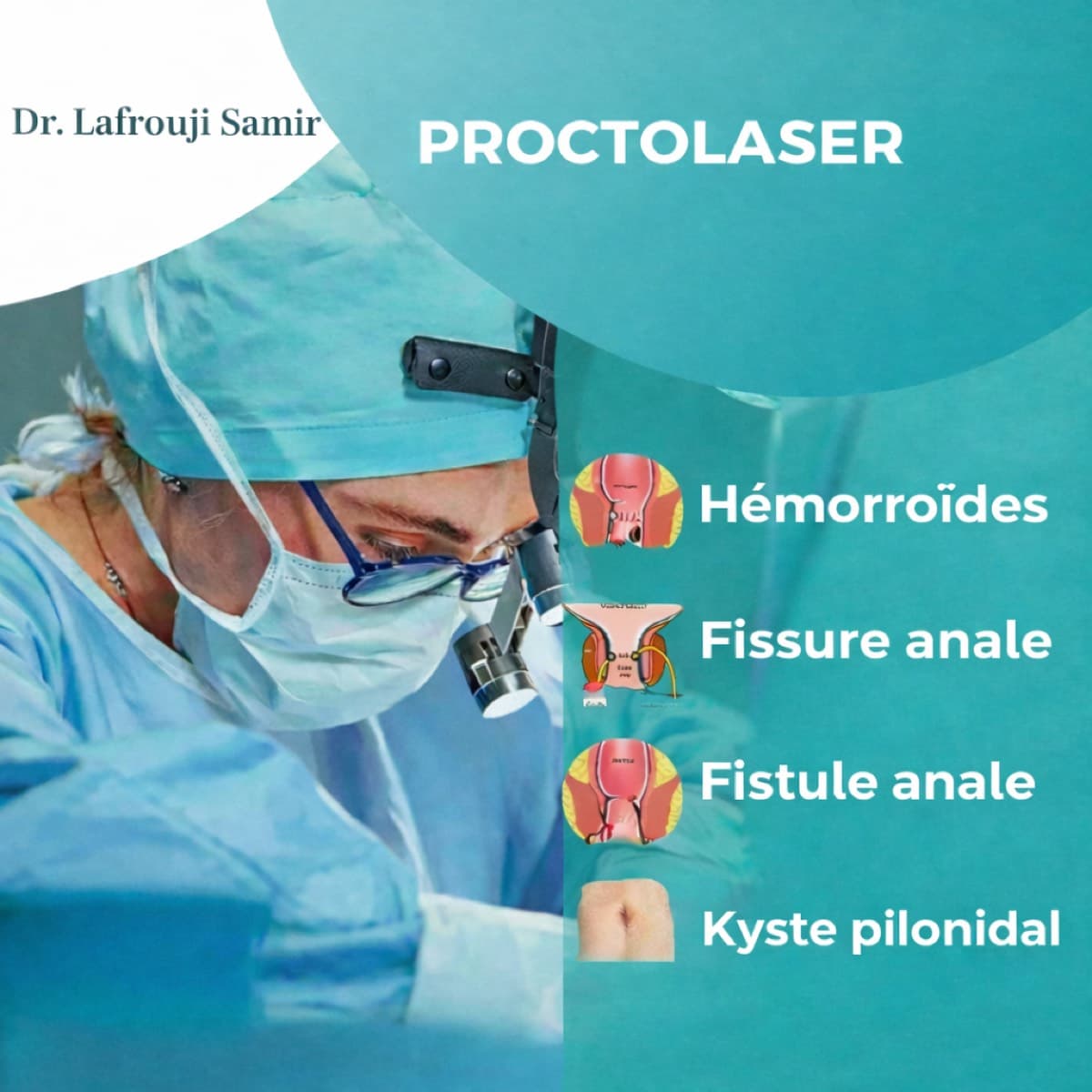Le Dr. Lafrouji Samir vous propose une prise en charge personnalisee et discrete, avec des approches chirurgicales adaptees a chaque situation pour un retablissement rapide et un confort optimal.